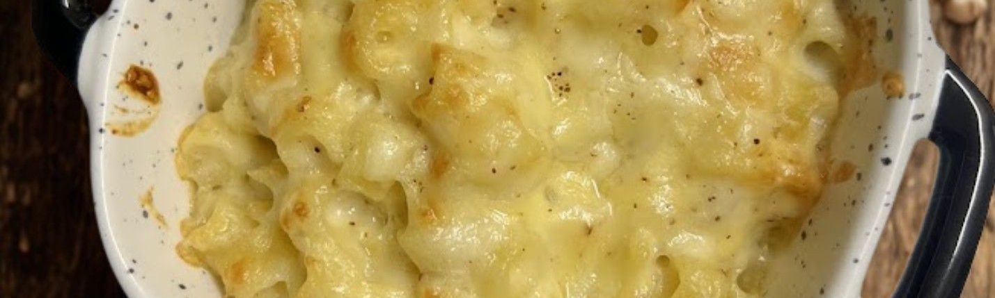 It's hotter than black pepper with warm, sweet, earthy tones, described as having notes of ginger, cinnamon, and nutmeg. Given that a classic mac n cheese bechamel sauce can have black pepper and nutmeg, we have replaced both with long pepper instead!